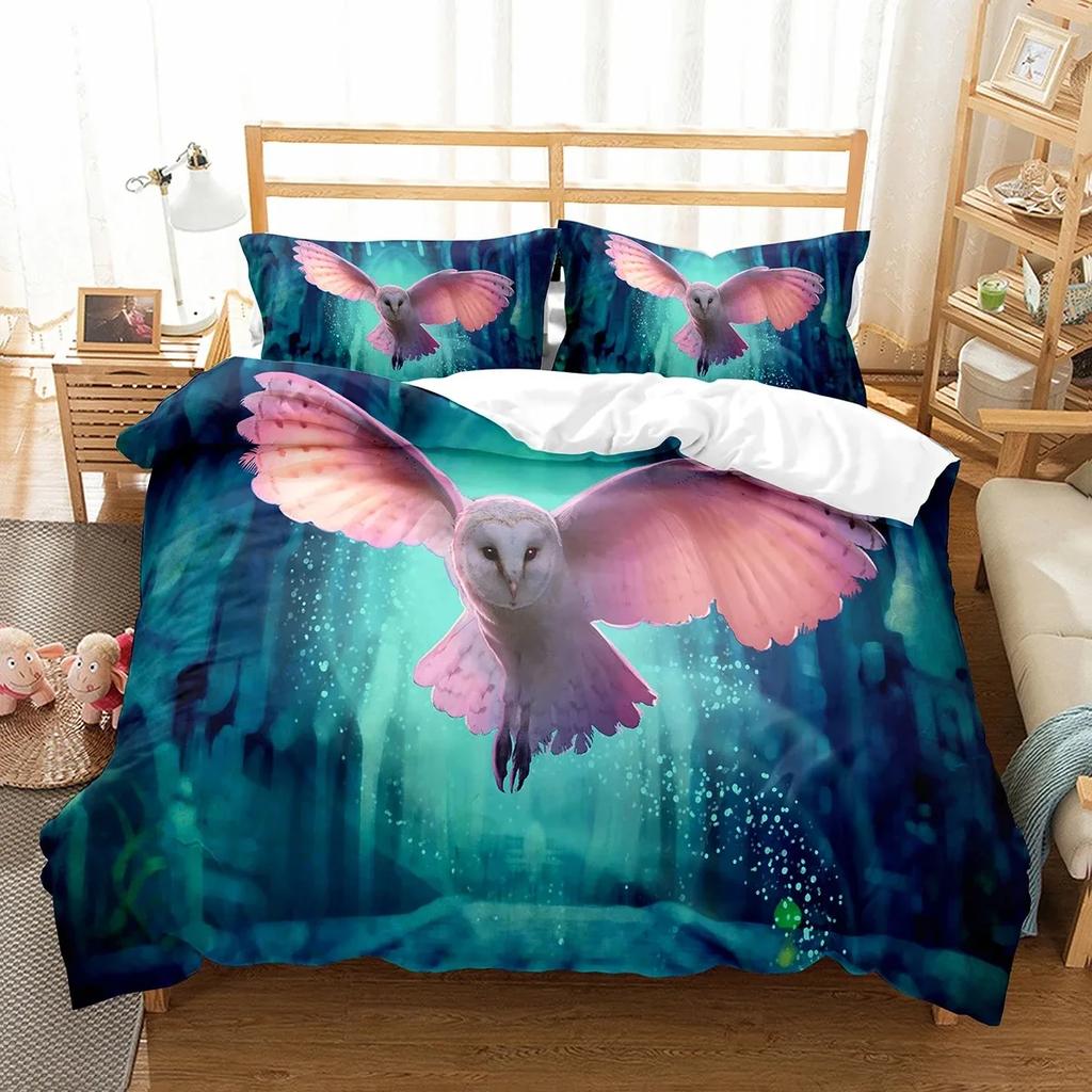 Eulen Bettbezug Set Niedlicher Vogel Polyester Bettdeckenbezug für Jungen Mädchen Kinder Bettwäsche Set King Size Bettdeckenbezug mit Kissenbezug