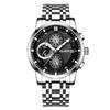 Top high-end brand men's watch waterproof multi-function chronograph quartz business solid steel band calendar watch