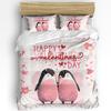 Cute Penguin And Love Heart Duvet Cover Set For Kids Teens Lightweight Quilt Cover With 2 Pillowcase Cartoon Penguin Bedding Set