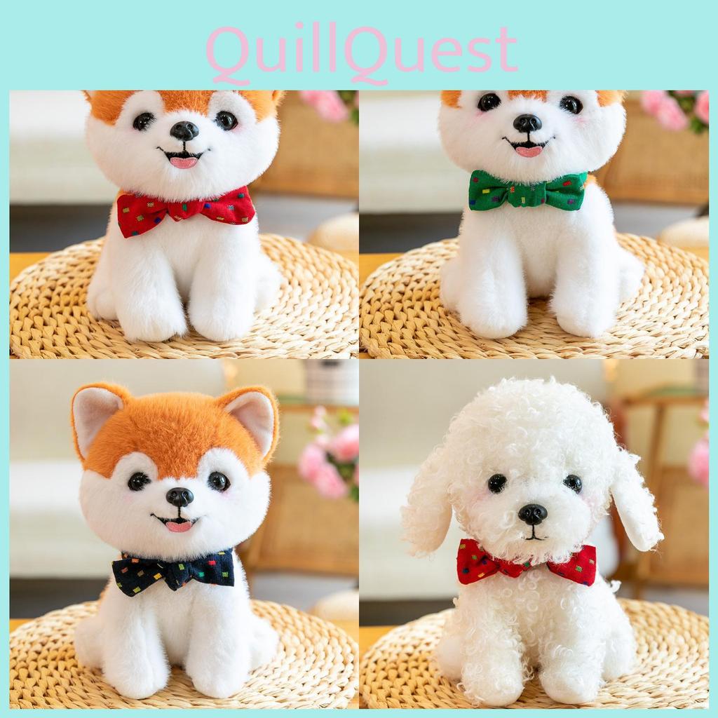 This lifelike Corgi Shiba Inu plush toy combines functionality with charming design,making it an ideal companion for children and adults alike.Crafted with premium PP cotton filling and soft short plush fabric,this 25cm 8 inch plush dog offers a huggable texture and durability.Available in multiple styles,including Corgi,Poodle,and French Bulldog designs,each variant features a vibrant bow tie in red, green,or blue for added appeal. Its realistic sitting posture enhances its decorative value,blending seamlessly into home or nursery settings.