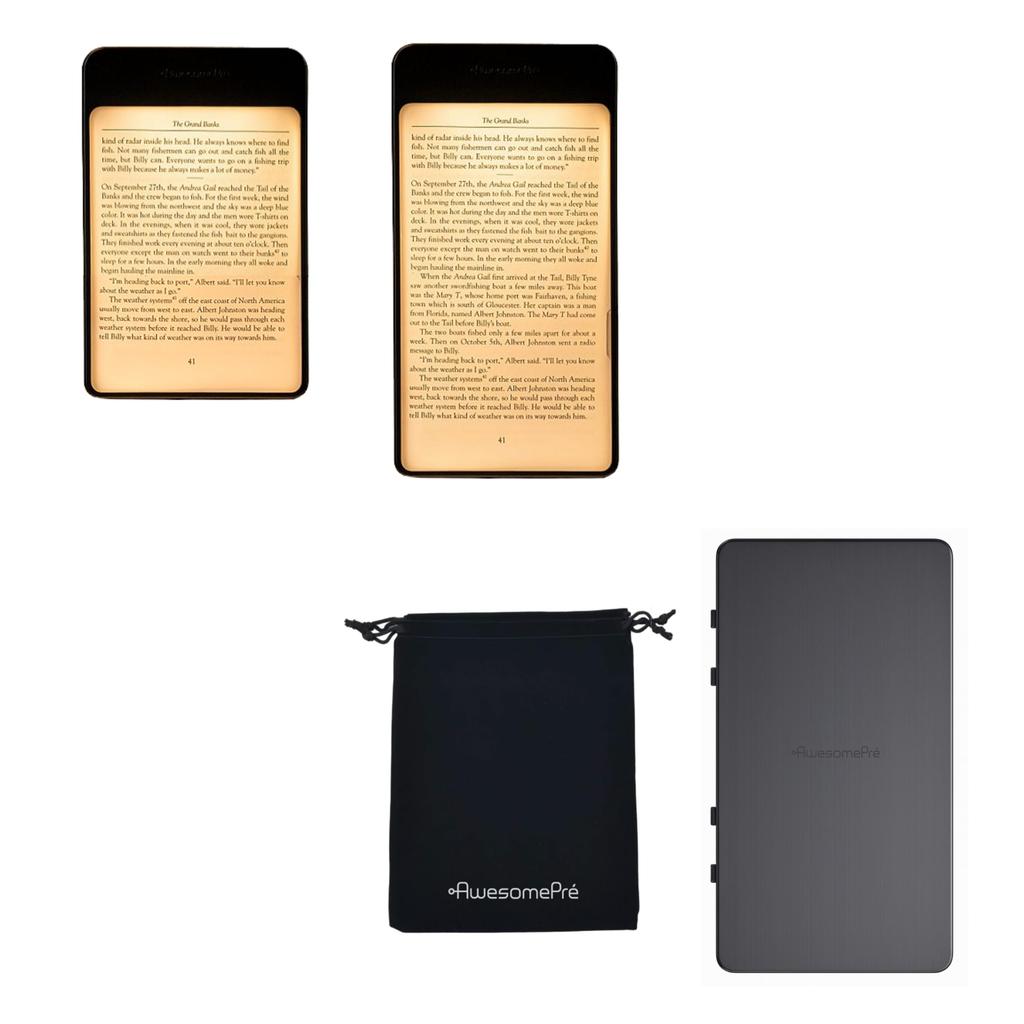 AwesomePré Buchlampe Set, LED Leselampe in 2 Größen (Light Edition + Plus) + Hartschalenetui + Beutel, USB-wiederaufladbar, Warm- oder Kaltton,