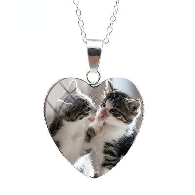 Mir geht es gut Alles ist gut Herzförmige Anhänger Halskette Vintage Schwarzes Katze Design Modischer Schmuck für alle Geschlechter