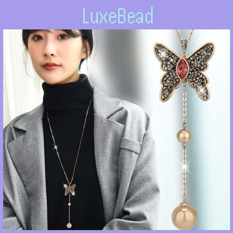 Die Elegante Schmetterlingspullover-Halskette ist in zwei exquisiten Farbkombinationen erhältlich: der faszinierende Schmetterling Roter Strass Kaffee Gold und der fesselnde Schmetterling Blauer Strass Kaffee Gold. Beide Optionen zeigen eine harmonische Mischung aus Eleganz und Lebendigkeit und ermöglichen es Ihnen, die perfekte Ergänzung für Ihre Garderobe zu wählen.. Die 81 cm lange Kette verfügt über ein stilvolles Gliederdesign und einen eleganten Anhänger, was Vielseitigkeit für das Layering mit anderen Halsketten oder das Tragen allein als Blickfang bietet.. Seine leichte Konstruktion sorgt für Komfort und macht es zur idealen Wahl für den Alltag oder besondere Anlässe.