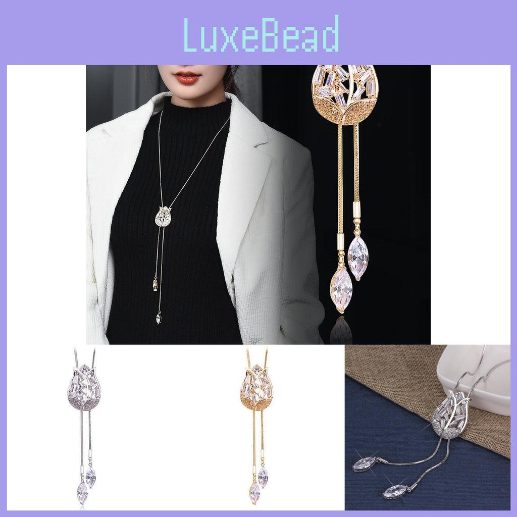 Elegante Lange Tulpen-Anhänger-Halskette Mit Funkelndem Zirkonia Für Stilvolle Frauen