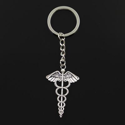 Neue Mode Männer 30mm Schlüsselbund DIY Metall Halter Kette Vintage Caduceus Medizin Symbol 49x30mm Silber Farbe anhänger Geschenk