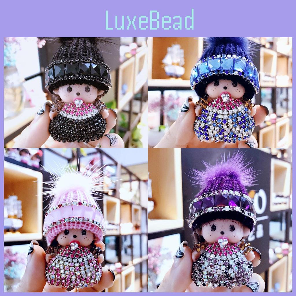 Mit Kristallen besetzter Monchhichi Schlüsselanhänger Strickmütze Nerz Anhänger Arcade-Preisaustauschgeschenk