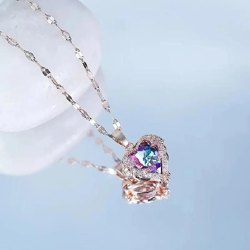 1 Stück Romantisches Paar Glasbesetzter Bronze Zirkon Ozean Herz Anhänger Kombination aus Titanstahlkette
