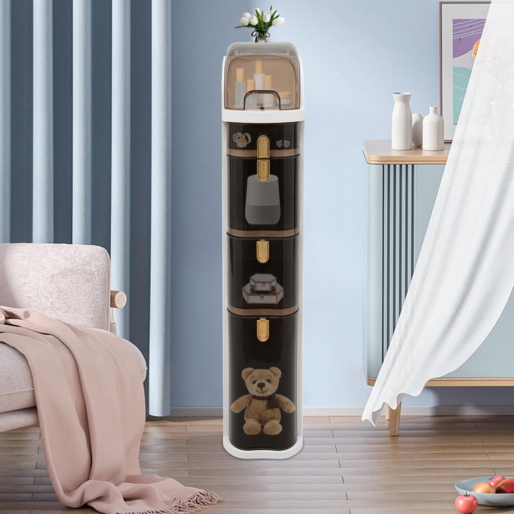 Bymaocar 4-Tier Free Standing Toilet Holder and Storage Bathroom Floor Cabinet Organizer Plastic Narrow Slim Cabinet With Wheels