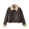 Mode Damenbekleidung Pelzintegrierter Mantel Retro Motorradjacke Top
