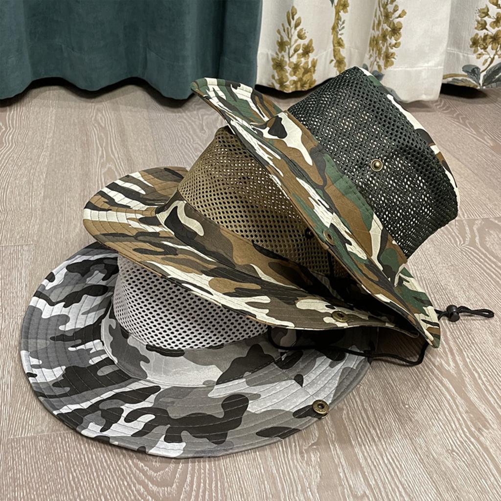 Sommer-Eimerhüte Ausgestanzt Atmungsaktiv Breiter Rand Fischerhut Kordelzug UV-Schutz Lässige Hüte für Outdoor-Reisen Wandern