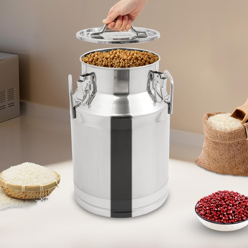 28L 304 Stainless Steel Sealed Storage Container, Milk Jug Brewing Can W/ Locking Lid & Handles, Airtight Dry Food Grain Bin