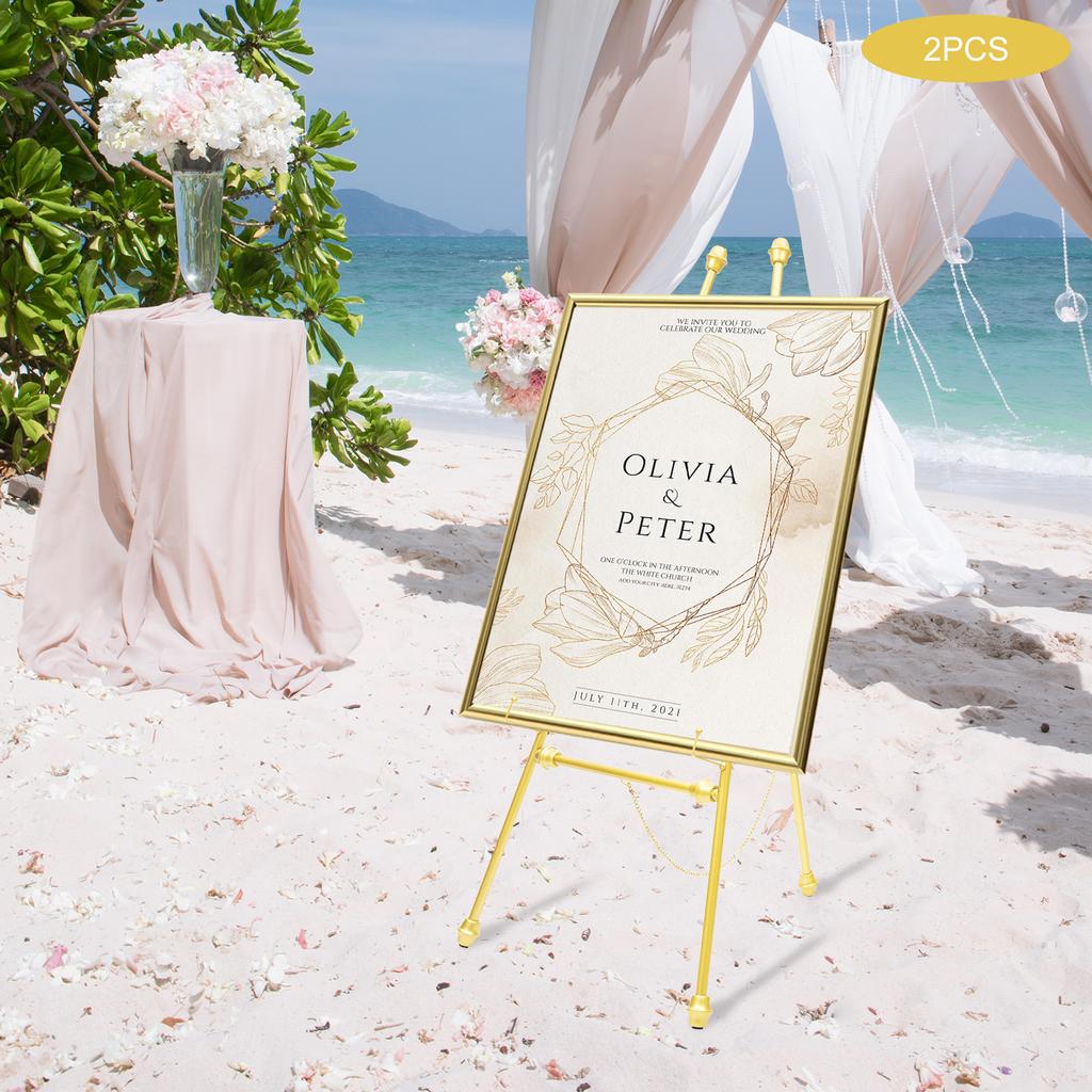 Goldene Fotorahmen-Aufsteller für Hochzeit, 2 Stück 50x118cm Staffelei Hintergrundhalter, Metallische Eisendekoration, Max. 5kg/11lbs Tragfähigkeit