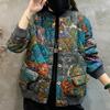 Winter Locker Große Größe Bedruckter Stehkragen Westernstil Damen Freizeit Baumwollmantel