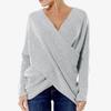 Einfarbiger Damenmode V-Ausschnitt Überkreuzte Vorderseite Unregelmäßiger Saum Pullover Lockerer Jumper