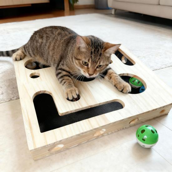 Dieses Katzennagelfeilen-Spielzeug ist aus strapazierfähigem Massivholz gefertigt und so konzipiert, dass es kräftigem Kratzen standhält, während es sanft zu den Pfoten Ihres Haustiers ist.. Mehr als nur ein Spielzeug, es verfügt über versteckte Kugeln und Labyrinthpfade, die durch spielerische Interaktion geistige Anregung und natürliche Krallenpflege bieten..