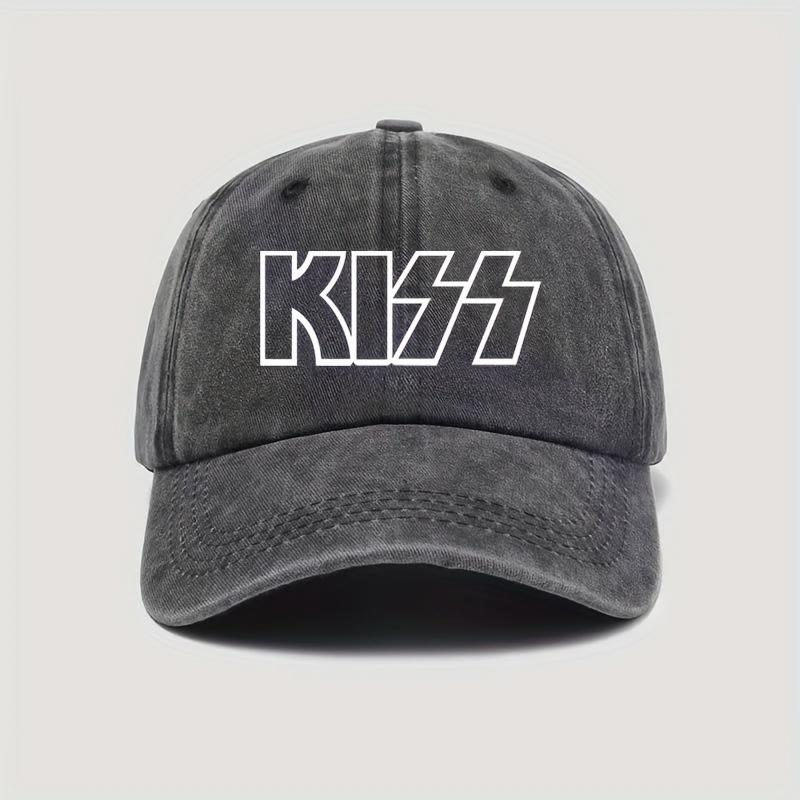 KISS Buchstabenaufdruck gewaschene Baseballkappe, Unisex Retro verstellbare Trucker-Kappe, Valentinstagsgeschenk, lässiger Outdoor-Sonnenhut