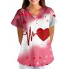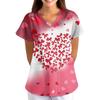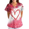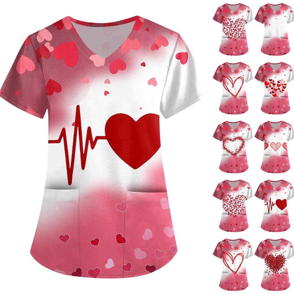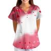 ÜbergrößeBedruckte Kasack Arbeitsuniform Oberteile für Damen V-Ausschnitt mit Überkreuzung Print Kurzarm Lustige T-Shirts Arbeitskleidung T-Shirt mit Taschen