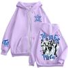 Damen Casual Mode Bedrucktes Langarm-Kapuzensweatshirt mit Reißverschluss