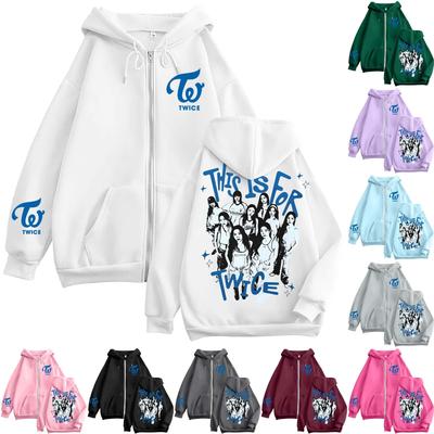 Kindermode Damen Leichter Langarm-Reißverschluss-Hoodie Bedruckter Hoodie mit Taschen