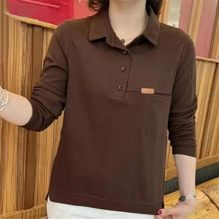 Revers-Pullover Damen Frühling und Herbst Locker Bauch bedeckend Langarmbluse Damen Freizeit Alleskönner Herbstkleidung