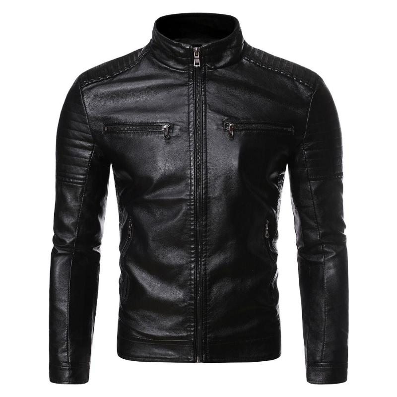 Schlanke Einfache und Trendige Herren Leder Freizeit Washed Motorrad PU Jacke