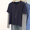 Besticktes Splicing Gestreiftes Langarm-T-Shirt für Damen Herbst Neu Fake Zweiteiliges Unterhemd
