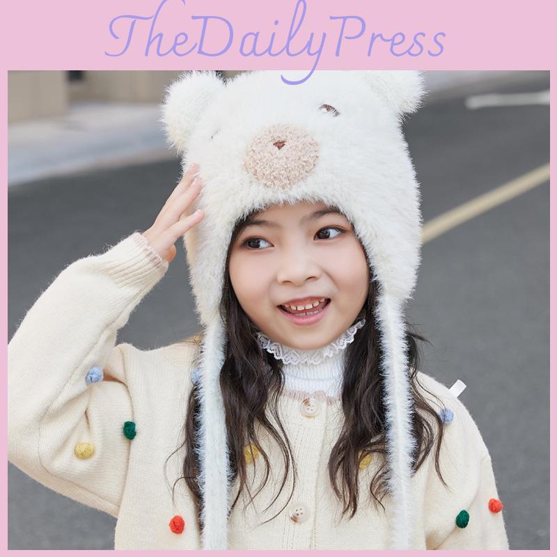 Kinder Cartoon Bär Strickmütze Mit Wärme Und Winddicht Für Winter Outdoor-Spiel