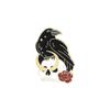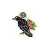 Geometric Black Bird Brooch Elegant Rose Flower Crow Enamel Pin For Fashion Lovers