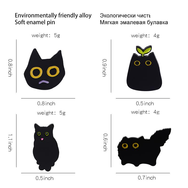Sprosse Schwarze Katze Emaille Anstecknadeln Benutzerdefiniert Niedliche Tiere Broschen Cartoon Kragenabzeichen Schmuck Geschenk für Kinder