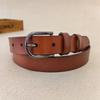 This vintage cowhide leather belt features a polished finish, crafted from durable two-layer genuine leather. It measures approximately 1.3 inches wide and is available in lengths of 41.3 and 45.3 inches, with a sleek alloy buckle and pin closure for secure fastening. Ideal for casual or office wear, it enhances everyday outfits with a classic touch. Easy to maintain, wipe clean with a damp cloth to preserve its polished surface.