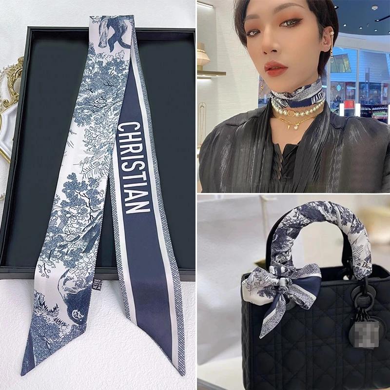 Französischer Frühlings-Hot-Sale: Damen-Twill-Tasche mit scharfem Hornriemen, Pflanzen- und Dschungeltiermotiven, Seidenband, Haarband und kleinem Schal mit Punktmuster