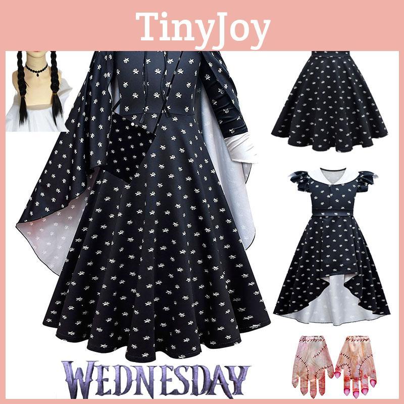 Mittwoch Addams Kleid Perücke Cosplay Kostüm für Mädchen Kinder Halloween Weihnachten Party