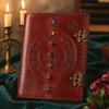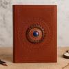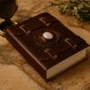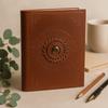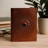 The textured brown cover rests softly in your hands, its concentric embossing drawing the eye toward a smooth, pale cabochon at the center. Within, a quiet space opens — a place where thoughts, emotions, and intentions can gather and take form. A personal sanctuary in written shape, ready whenever you are. 🌙