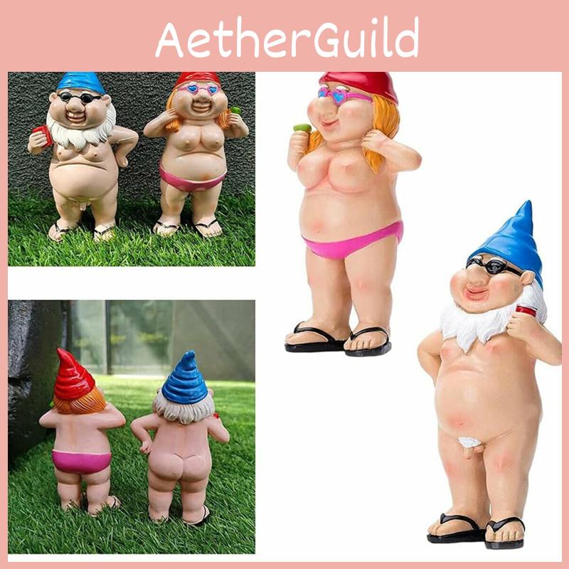 Naked Resin Gnome Statue For Magical Garden Decor Nudist Gift
