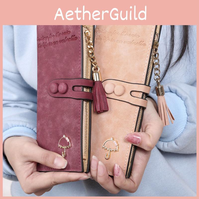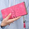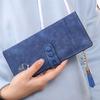 Elegant Women Leather Card Holder Long Trifold Wallet With Tassel And Checkbook Pocket