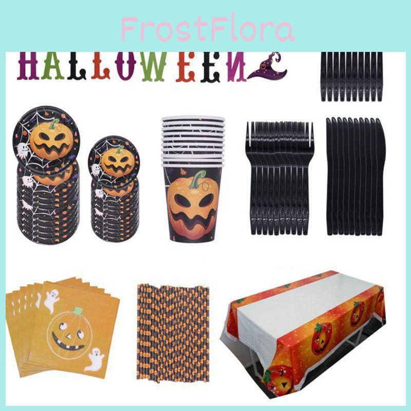 Halloween Party Dekorationszubehör einschließlich Kürbis-Tischdecke und Strohhalme**