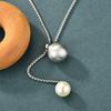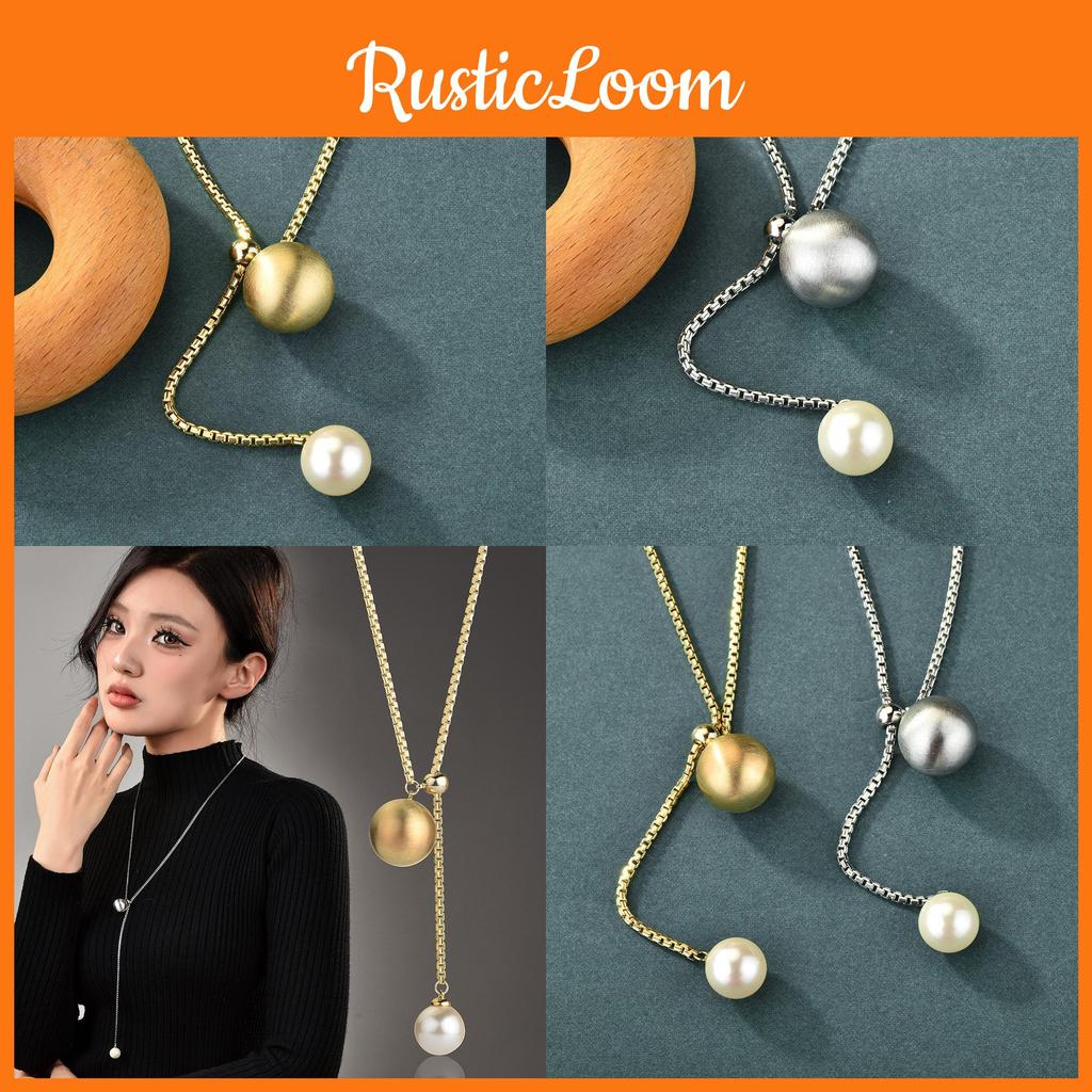 Chic Pull And Slide Pearl Long Pendant Necklace With Sleek Snake Chain For Fashionable Women