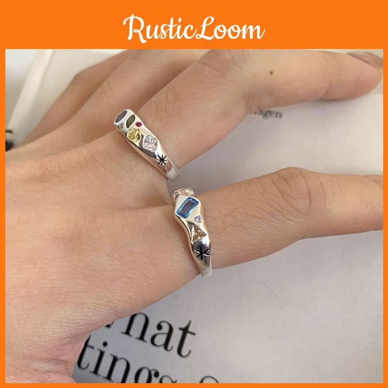 Zukunftsweisender Stil: Dieser Ring verkörpert zeitgenössische Trends mit seiner geometrischen Form und farbenfrohen Elementen, perfekt für die moderne Frau.