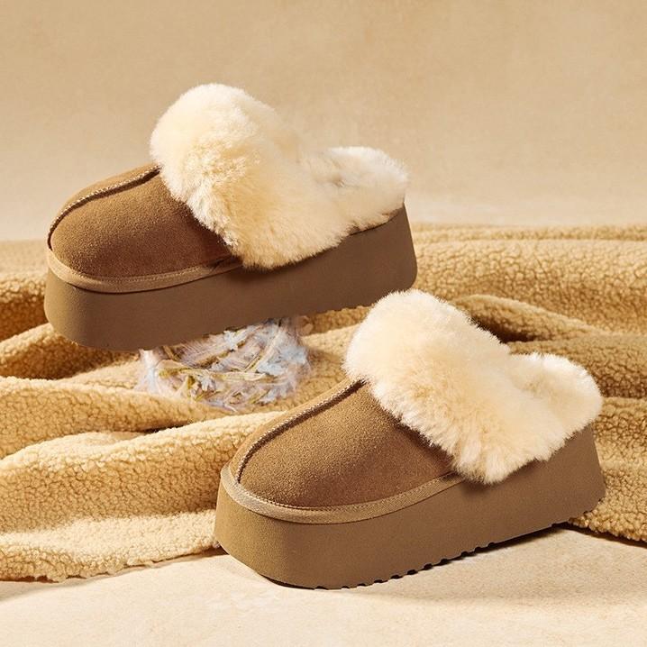 Höhenverstärkende Schneestiefel mit dicker Sohle für Damen 2025 Winter neue Samt-verdickte warme Zehenkappe Baumwoll-Halbpantoffeln