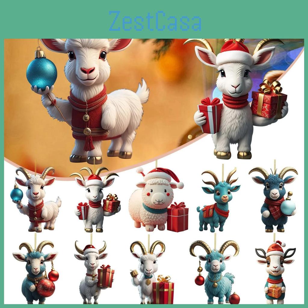 Niedlicher Acryl Cartoon Ziege Weihnachtsauto Anhänger Charmante Feiertagsdeko Geschenk