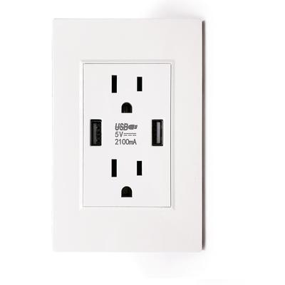 Dual-USB-Wandsteckdose, Ladegerät, AC/DC-Netzteil, Stecker, Steckdosenplatte, weiß
