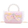 Trendy Girl's Pearl Handbag Stylish Lace Bowknot Princess Shoulder Bag For Kids