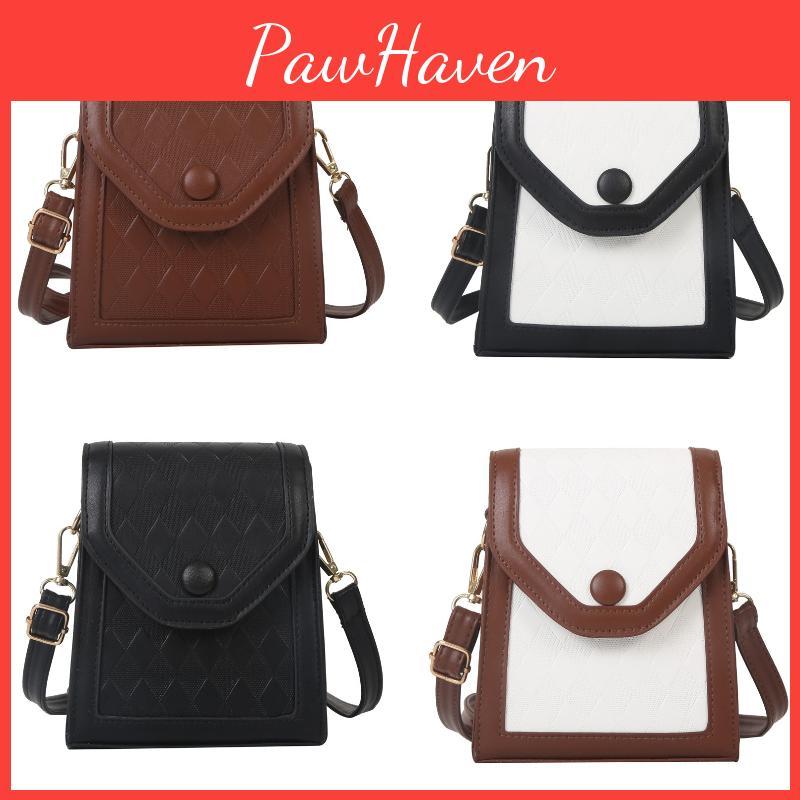 Introducing the trendy Patchwork Grid Small Bag for Women. The bag is available in four fashionable colors: black, brown, white with brown accents, and white with black accents. The PU material used in its construction ensures durability and longevity, so you can enjoy this bag for years to come.