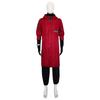 The outfit features a stunning red and pink design with intricate details that make it perfect for cosplay events, comic conventions, and Halloween parties.