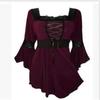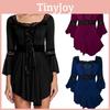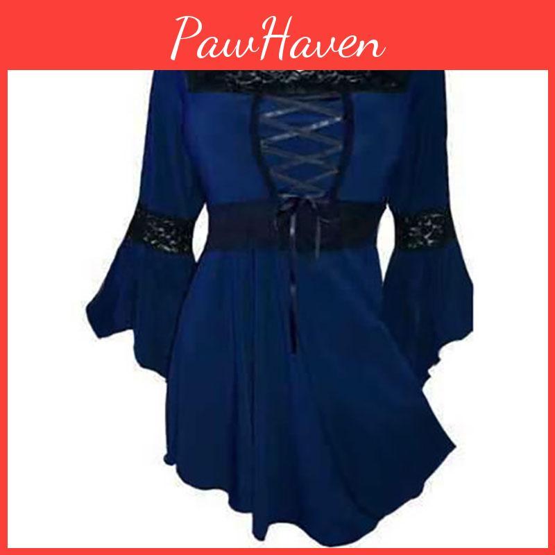 Elegant Plus Size Women Lace Up Blouse With Ruffle Details And Long Bell Sleeves