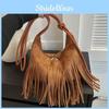 Bohemian Feather Tassel Shoulder Bag With Polyester Lining For Casual Outings