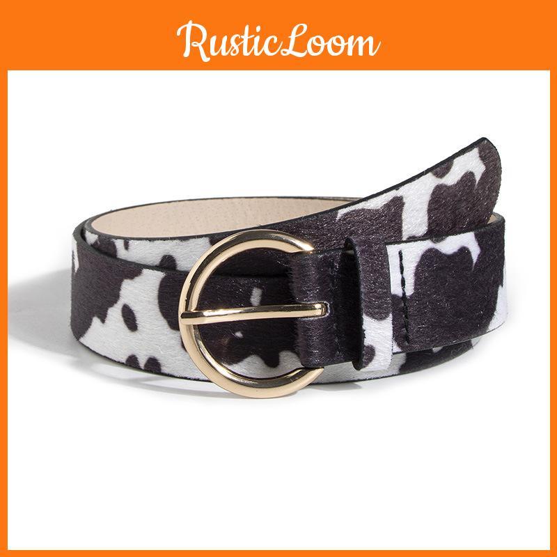 Vintage Cow Pattern Faux Leather Belt With Alloy Buckle For Stylish Girls