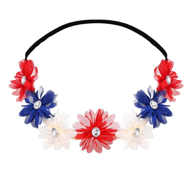 Patriotisch und attraktiv: Die Stirnbänder sind in klassischen patriotischen Farben gestaltet und jedes Stirnband ist mit 7 Stück roten, weißen und blauen Kristallblumen versehen, die wunderschön und leuchtend sind und gut zu jeder Art von Kleidung passen, wie z. B. Kleidern, Jeans und T-Shirts, wodurch Sie in der Menge hervorstechen.