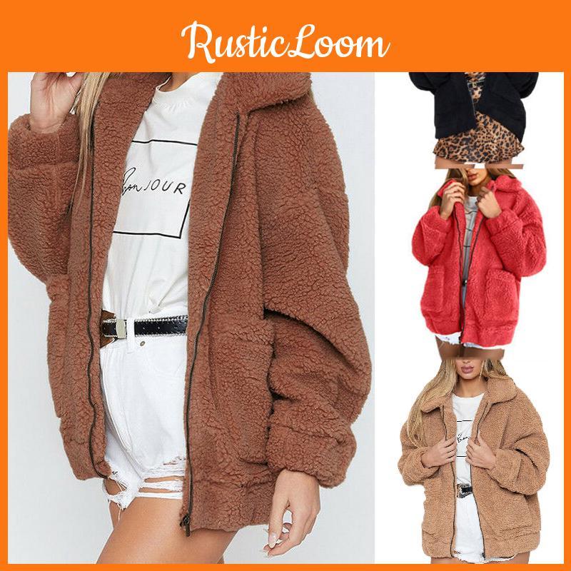 Luxuriöse Damen Dicke Warme Fleecejacke Mantel mit Weichem Flauschigem Kunstfell