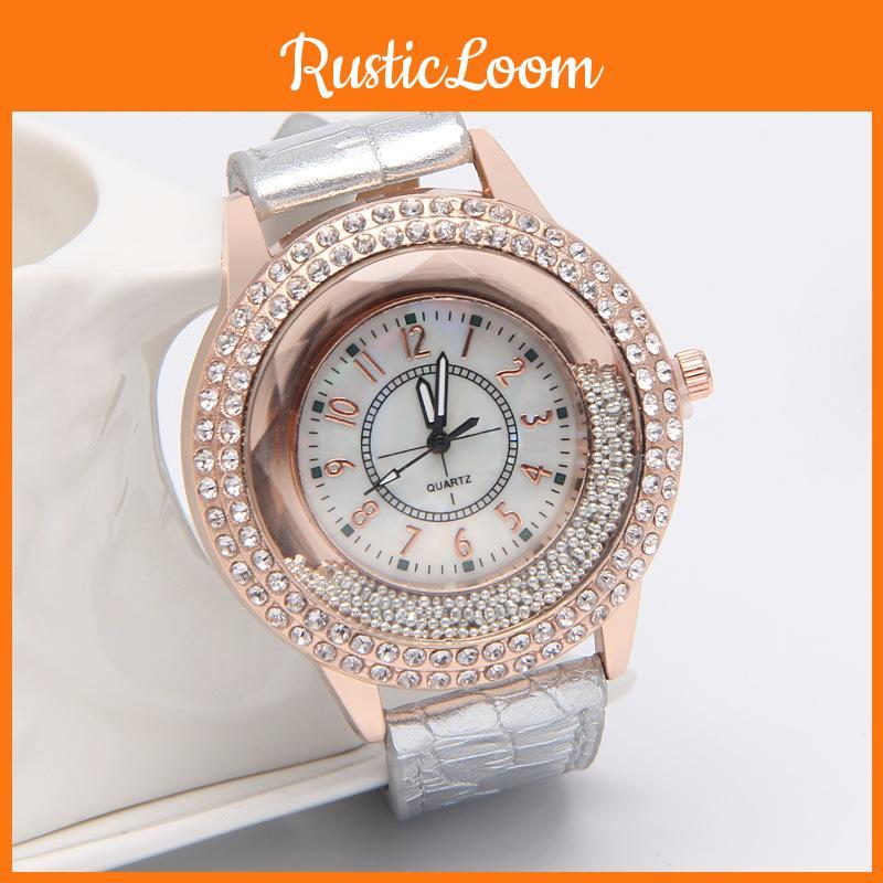 Modische Damen-Quarzuhr mit Strasssteinen und Kunstlederarmband